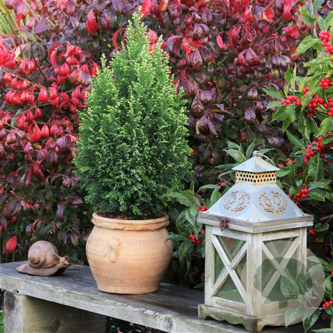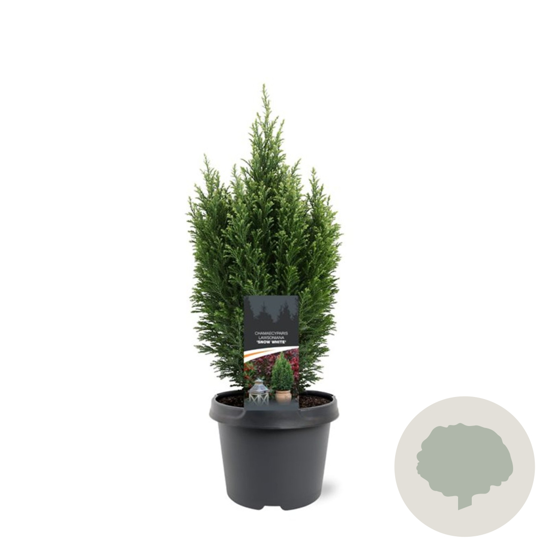 | Toelichting | De Vals cipres 'Snow White' is een prachtige conifeer met groen blad. Deze cipres kan een hoogte bereiken van 200 cm en gedijt goed in zonnige tot halfschaduwrijke standplaatsen op neutrale of zandgrond. Perfect voor een mooie groene toevoeging aan je tuin. |