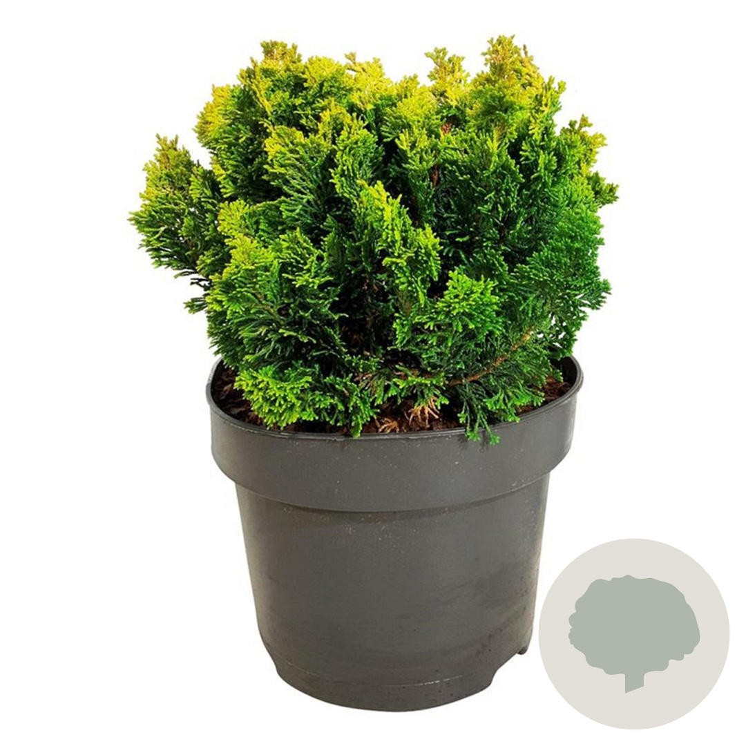 | Toelichting | Chamaecyparis obtusa 'Meroki Twin' is een groenblijvende conifeer met een volwassen hoogte van 150 cm. Deze plant gedijt goed in zonnige tot halfschaduwrijke standplaatsen en prefereert zandgrond, neutrale grond of goede tuingrond. Helaas is er geen informatie bekend over de bloeiperiode. |