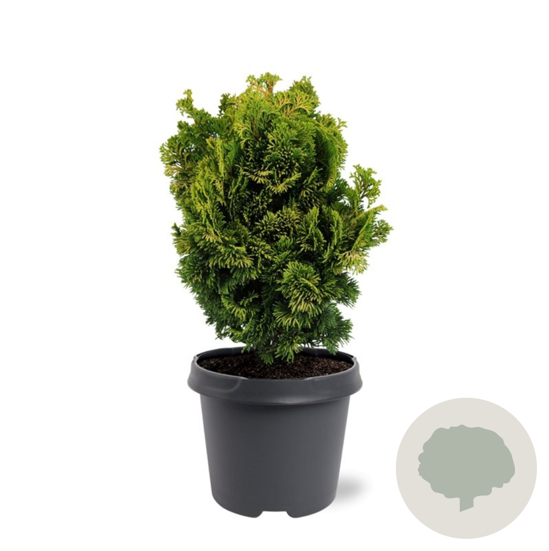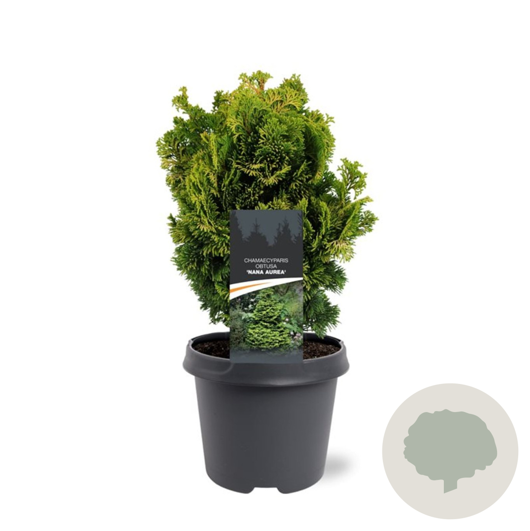 | Toelichting | De Dwergcipres (Chamaecyparis o. 'Nana Aurea') is een langzaam groeiende conifeer met opvallend geel blad. Deze plant gedijt goed in zowel zon als halfschaduw op zandgrond, klei of neutrale grond. Perfect voor een kleurrijke toevoeging aan je tuin! |