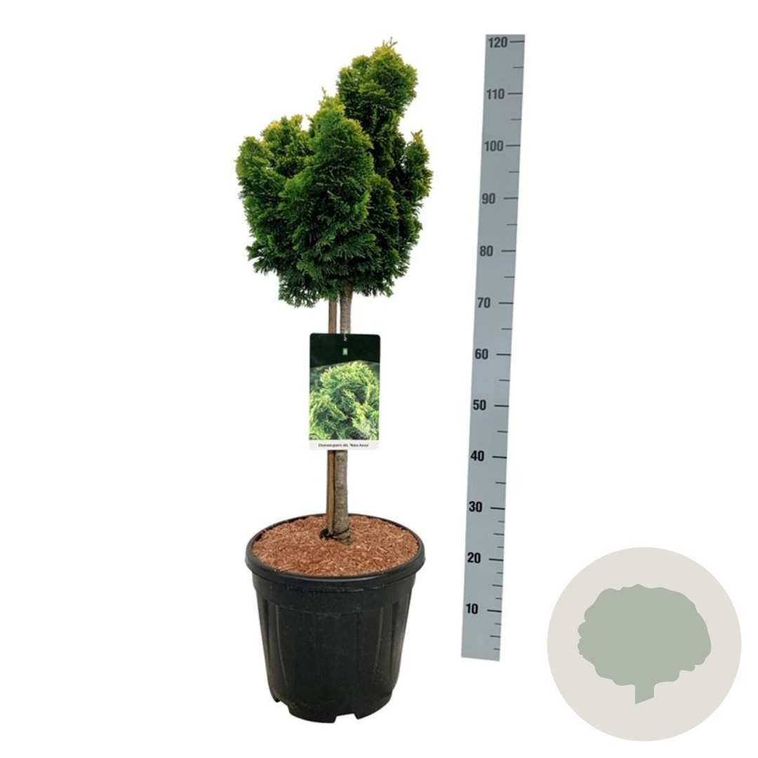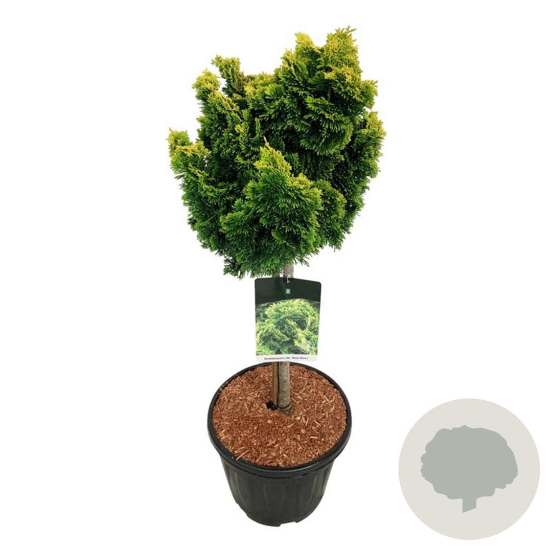 | Toelichting | De Dwergcipres (Chamaecyparis o. 'Nana Aurea') is een langzaam groeiende conifeer met opvallend geel blad. Deze plant gedijt goed in zowel zon als halfschaduw op zandgrond, klei of neutrale grond. Perfect voor een kleurrijke toevoeging aan je tuin! |