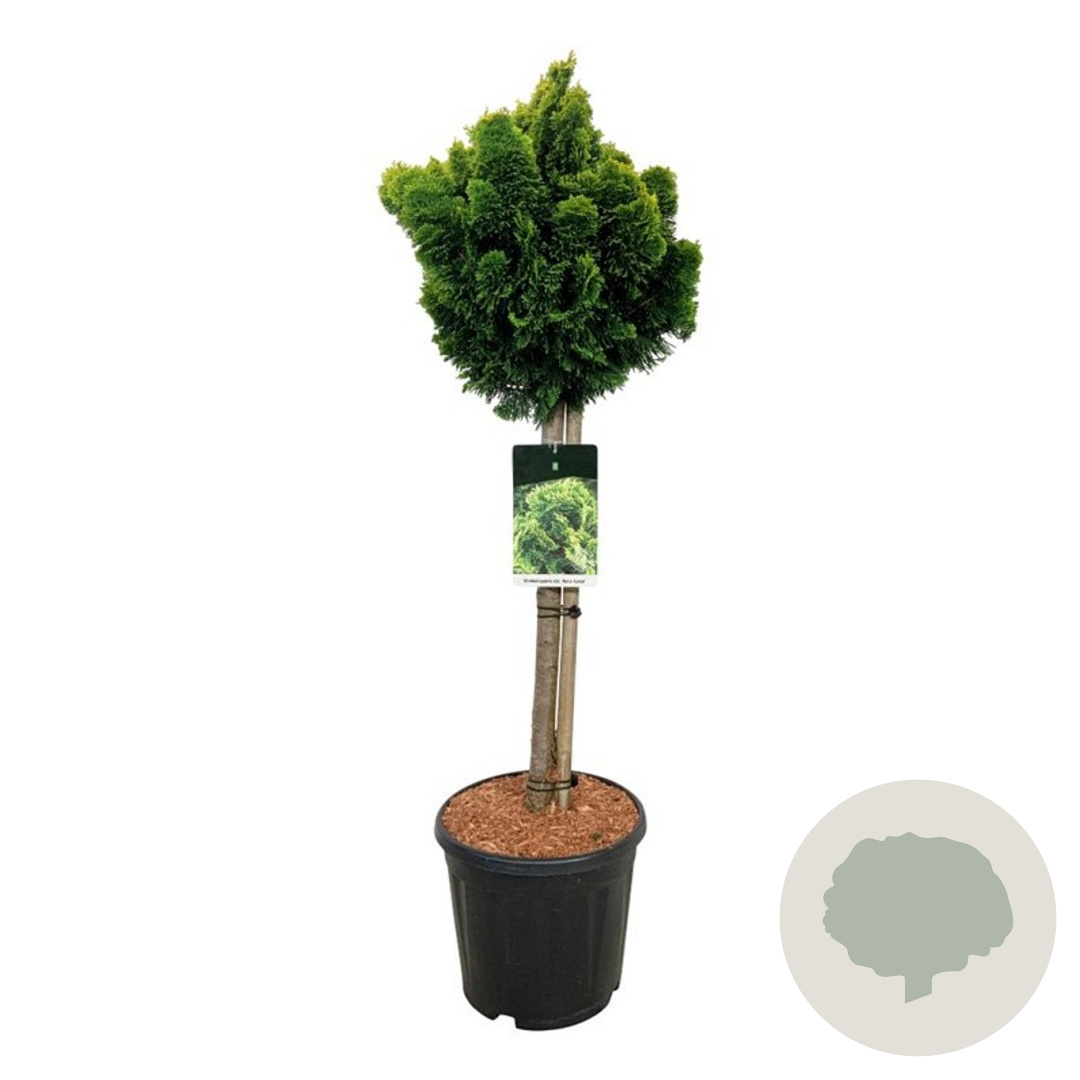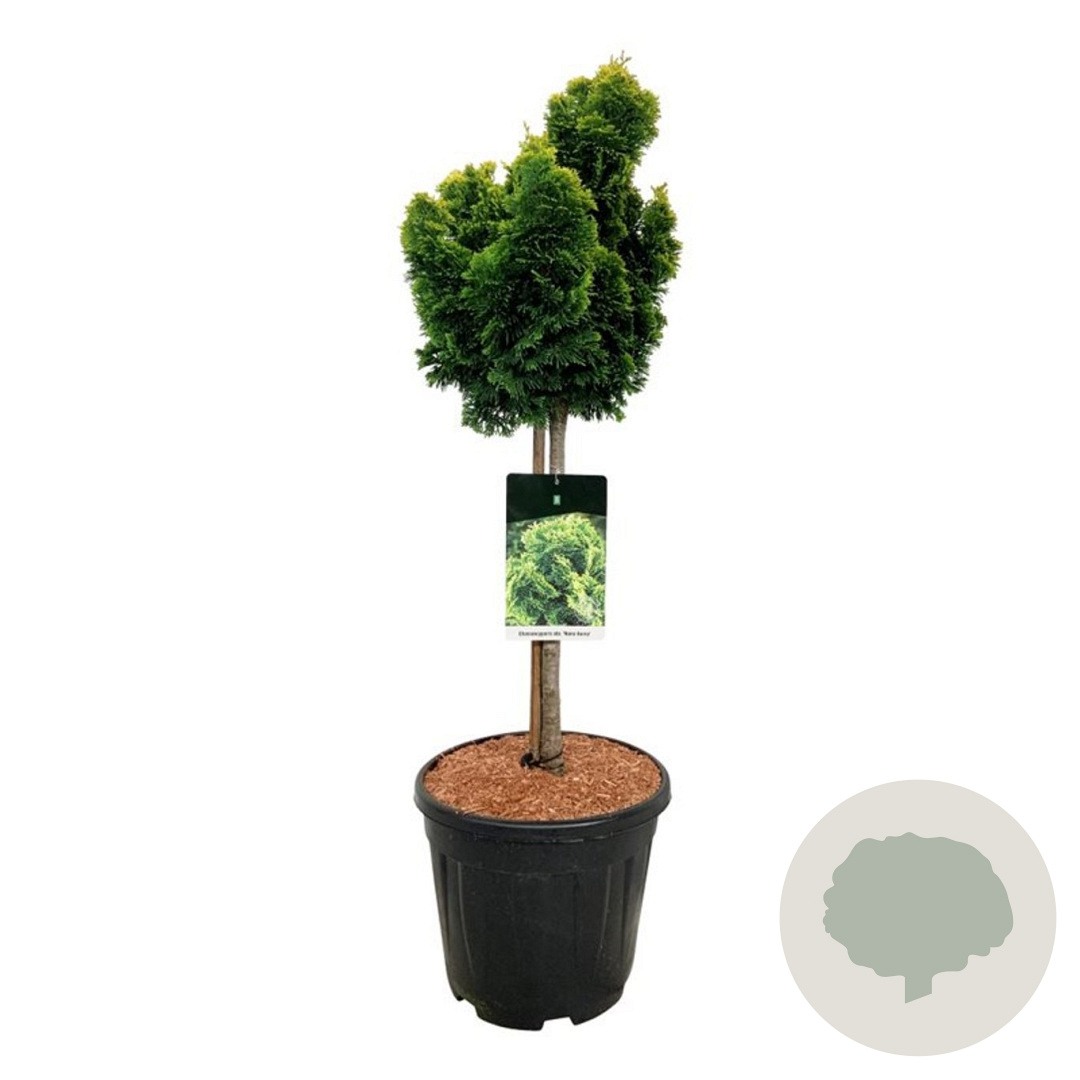 | Toelichting | De Dwergcipres (Chamaecyparis o. 'Nana Aurea') is een langzaam groeiende conifeer met opvallend geel blad. Deze plant gedijt goed in zowel zon als halfschaduw op zandgrond, klei of neutrale grond. Perfect voor een kleurrijke toevoeging aan je tuin! |