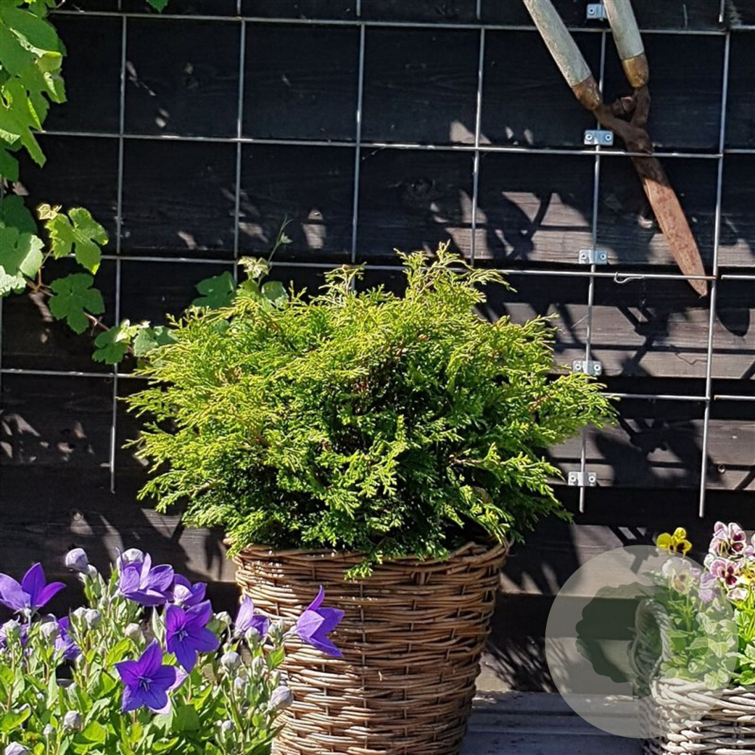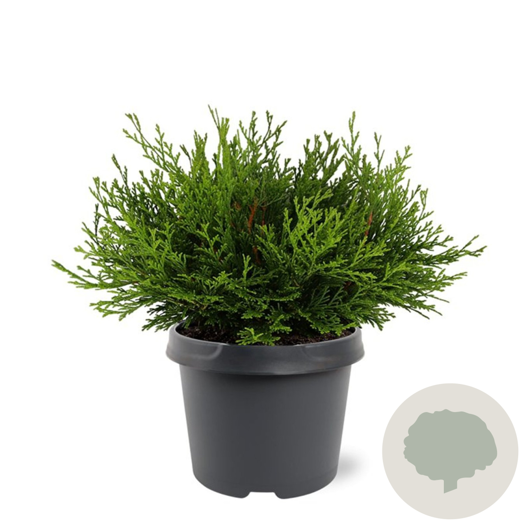 | Toelichting | De Dwergcipres (Chamaecyparis o. 'Pygmaea') is een compacte conifeer met groene bladeren. Deze plant gedijt goed in zon en halfschaduw op zandgrond, neutrale grond of goede tuingrond. Bereikt een hoogte van 100 cm en is ideaal voor kleine tuinen. |