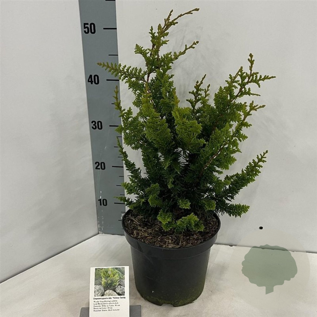 | Toelichting | De Dwergcipres (Chamaecyparis o. 'Yel. Teddy Bear') is een compacte conifeer met groen blad. Deze cipres bereikt een hoogte van ongeveer 100 cm en gedijt goed in zonnige tot halfschaduwrijke omgevingen met neutrale tot goede tuingrond. |