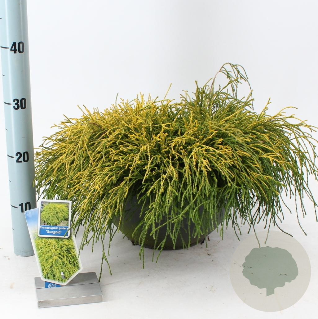 | Toelichting | De Gele dwergcipres (Chamaecyparis p. 'Sungold') is een prachtige conifeer met opvallend geel blad. Deze langzaam groeiende plant bereikt een hoogte van 150 cm en gedijt goed in zon en halfschaduw op zandgrond, lichte klei of neutrale grond. |