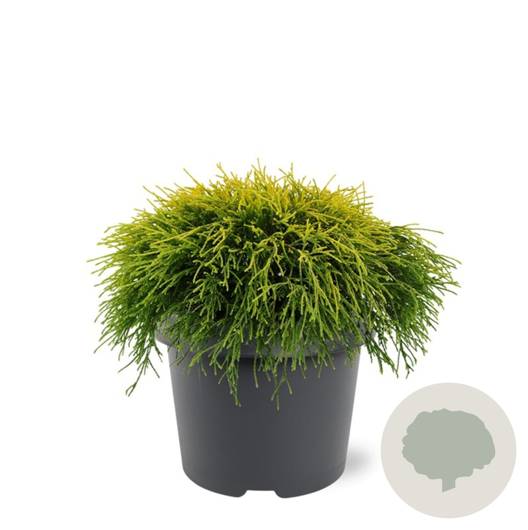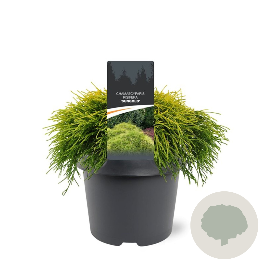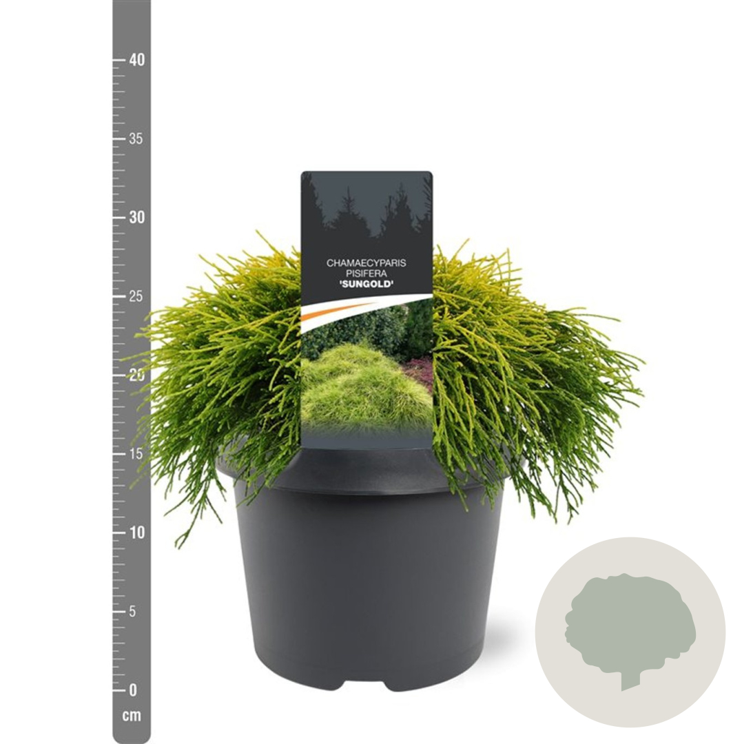 | Toelichting | De Gele dwergcipres (Chamaecyparis p. 'Sungold') is een prachtige conifeer met opvallend geel blad. Deze langzaam groeiende plant bereikt een hoogte van 150 cm en gedijt goed in zon en halfschaduw op zandgrond, lichte klei of neutrale grond. |