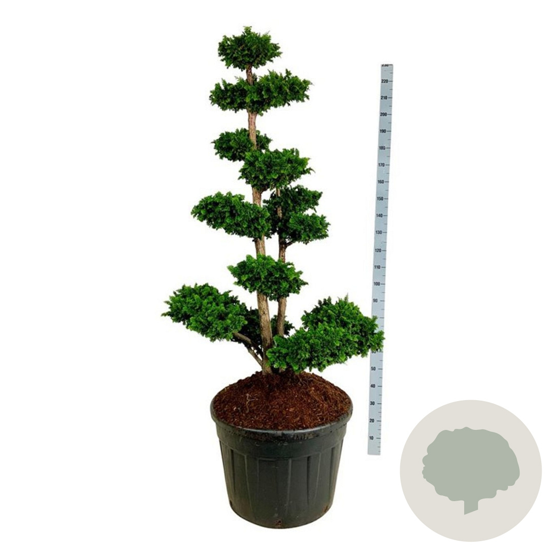 | Toelichting | De Dwergcipres 'Teddy Bear' is een compacte conifeer met groen blad. Deze cipres bereikt een hoogte van ongeveer 150 cm en gedijt goed in zonnige tot halfschaduwrijke standplaatsen op zandgrond, lichte klei of neutrale grond. |