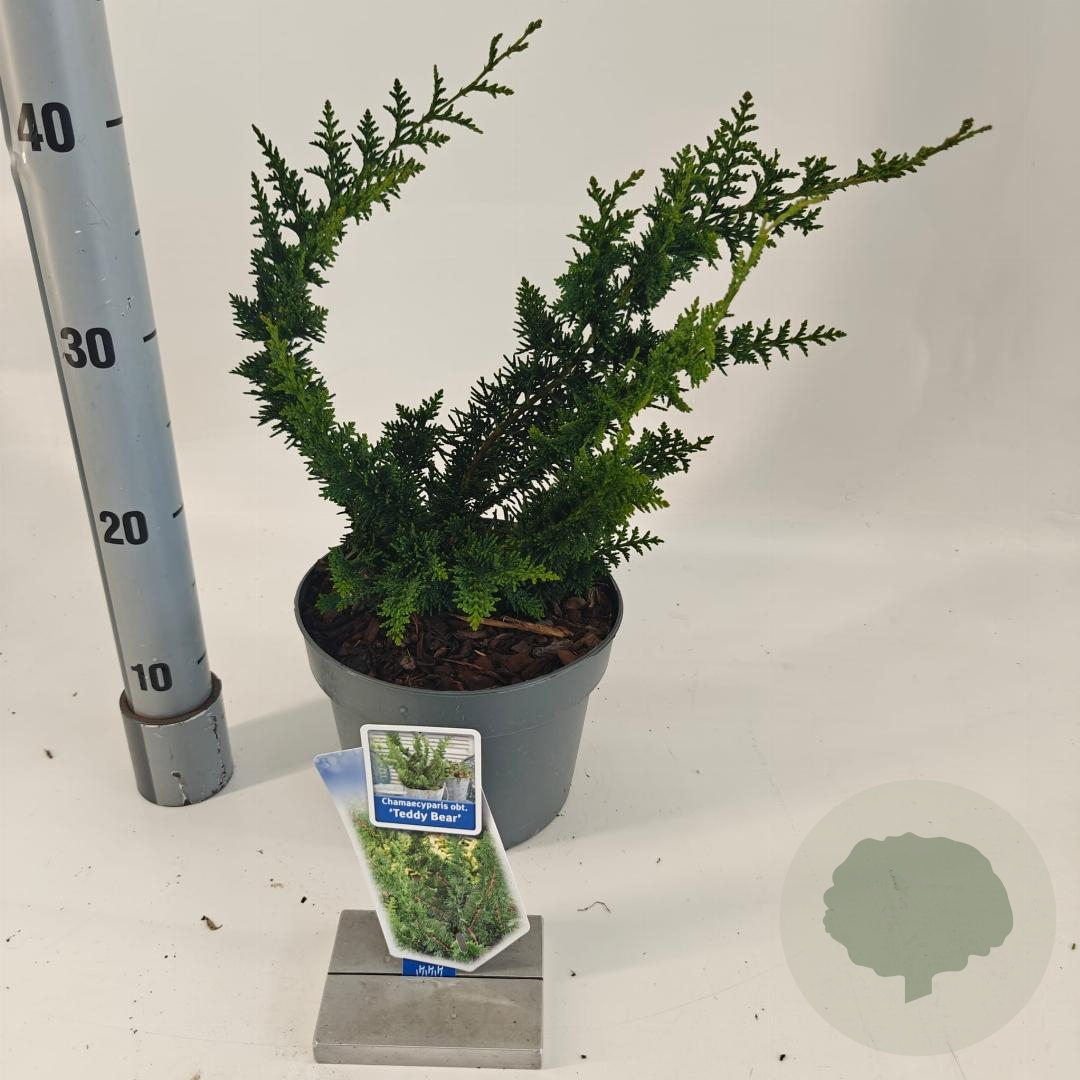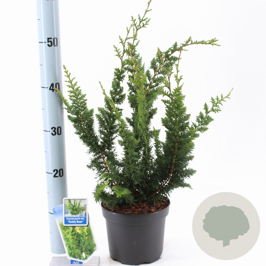| Toelichting | De Dwergcipres 'Teddy Bear' is een compacte conifeer met groen blad. Deze cipres bereikt een hoogte van ongeveer 150 cm en gedijt goed in zonnige tot halfschaduwrijke standplaatsen op zandgrond, lichte klei of neutrale grond. |