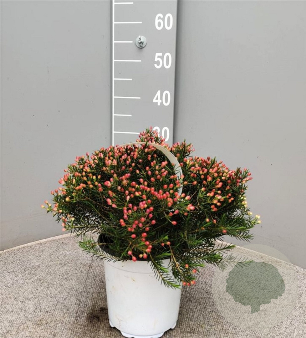 | Toelichting | De Waxflower (Chamelaucium uncinatum) is een prachtige plant met roze en witte bloemen die bloeien van mei tot juli. Deze plant gedijt goed in de zon op zandgrond, neutrale grond of goede tuingrond. De volwassen hoogte is ongeveer 60 cm. |