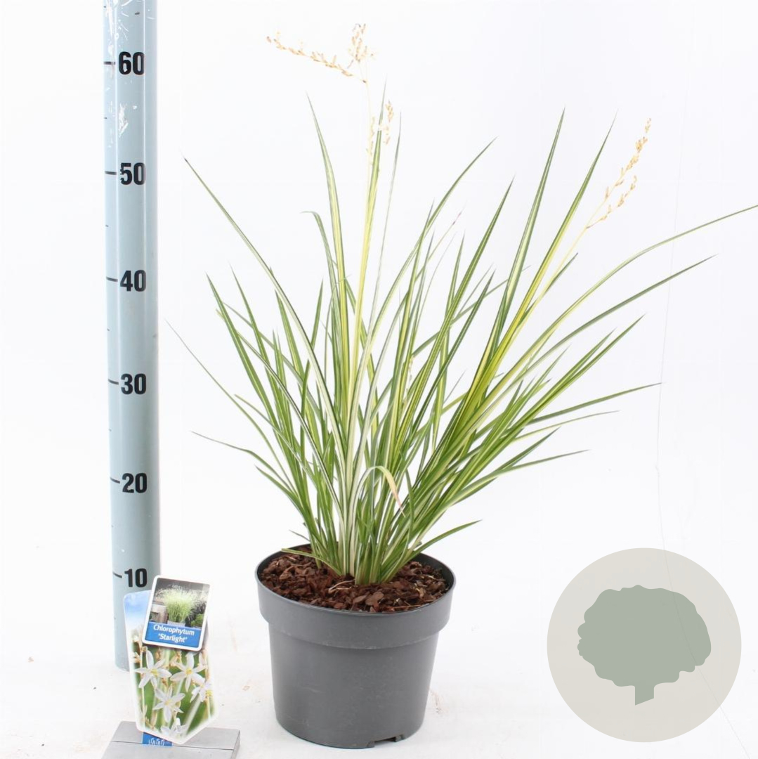 | Toelichting | De Graslelie 'Starlight' is een prachtige kamerplant met groen-witte bladeren en witte bloemen. Deze plant bloeit van juni tot augustus en gedijt goed in zon en halfschaduw. Perfect voor lichte klei, neutrale of humusrijke grond. |