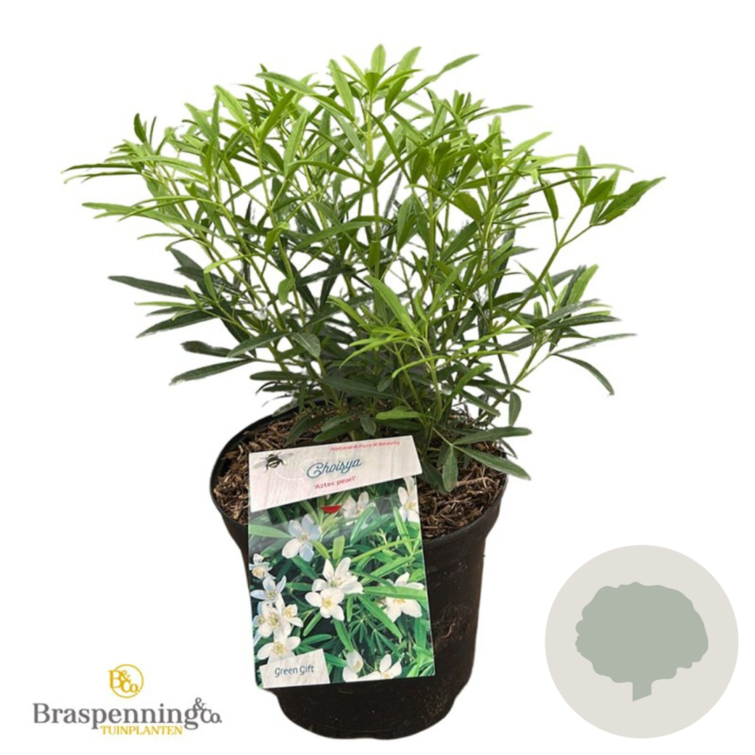 | Toelichting | De Mexicaanse oranjebloesem 'Aztec Pearl' is een prachtige groenblijvende struik met witte bloemen in mei - juni en september. Deze plant gedijt goed in zon en halfschaduw op neutrale, goede tuingrond met humus. |