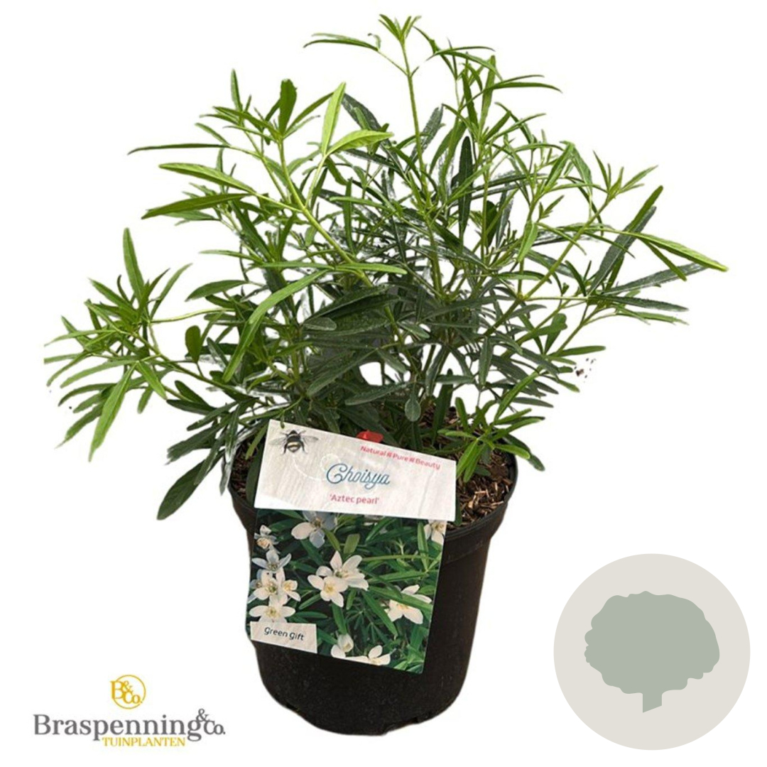 | Toelichting | De Mexicaanse oranjebloesem 'Aztec Pearl' is een prachtige groenblijvende struik met witte bloemen in mei - juni en september. Deze plant gedijt goed in zon en halfschaduw op neutrale, goede tuingrond met humus. |