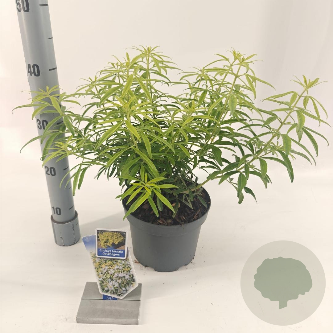 | Toelichting | De Goudvingerstruik (Choisya Goldfingers) is een prachtige sierheester met goudgele bladeren en witte bloemen in de lente en herfst. Deze struik bereikt een hoogte van 100 cm en gedijt het beste in zon tot halfschaduw op neutrale, goede tuingrond. |