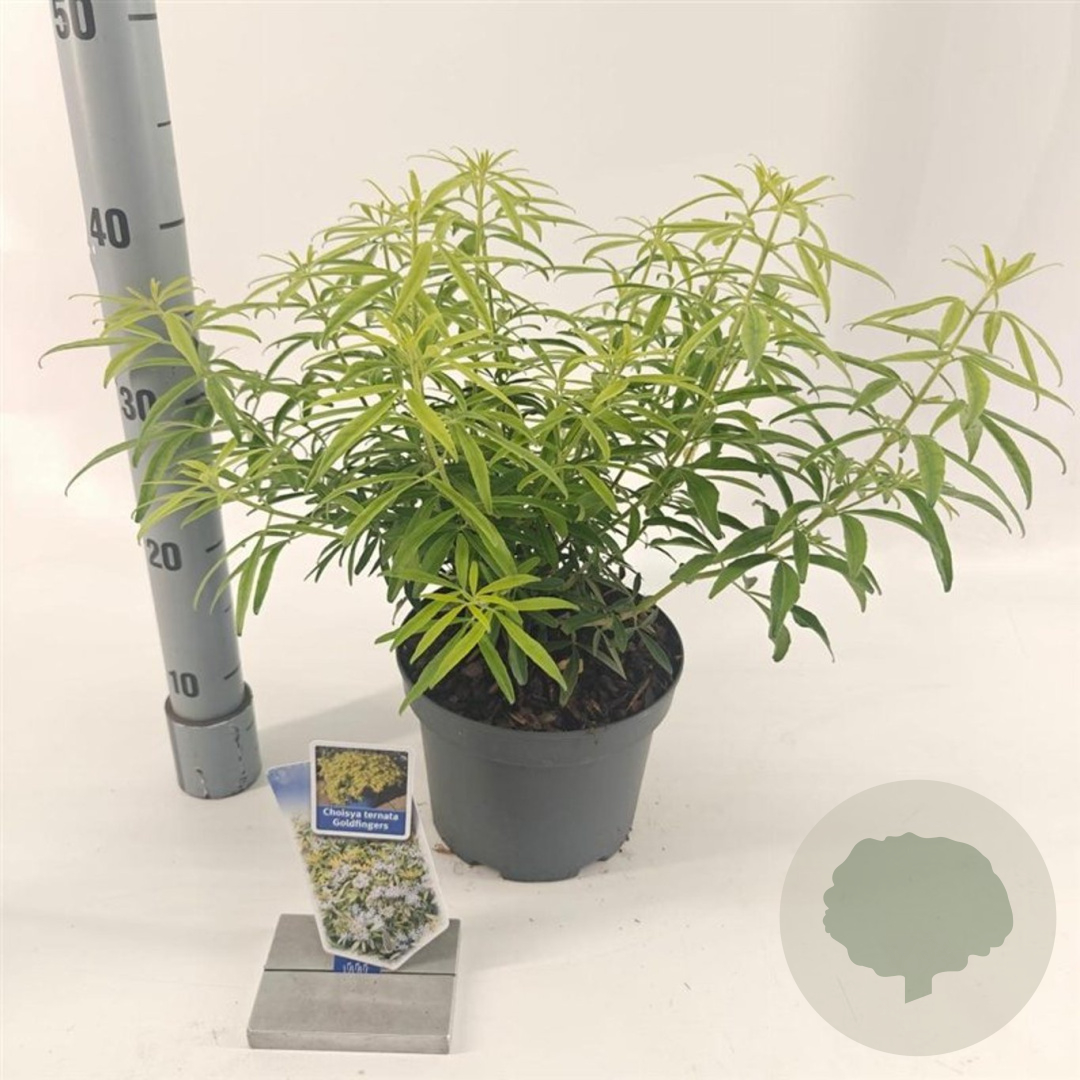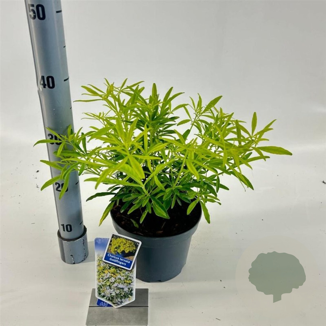 | Toelichting | De Goudvingerstruik (Choisya Goldfingers) is een prachtige sierheester met goudgele bladeren en witte bloemen in de lente en herfst. Deze struik bereikt een hoogte van 100 cm en gedijt het beste in zon tot halfschaduw op neutrale, goede tuingrond. |