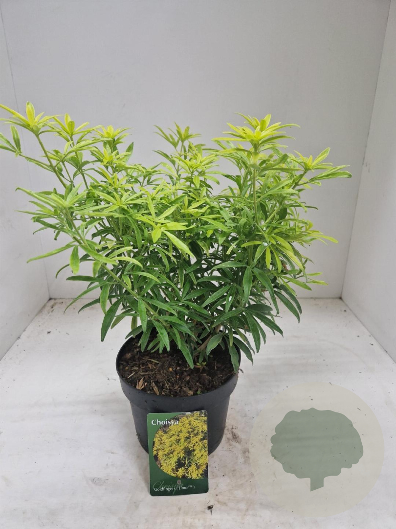 | Toelichting | De Goudvingerstruik (Choisya Goldfingers) is een prachtige sierheester met goudgele bladeren en witte bloemen in de lente en herfst. Deze struik bereikt een hoogte van 100 cm en gedijt het beste in zon tot halfschaduw op neutrale, goede tuingrond. |