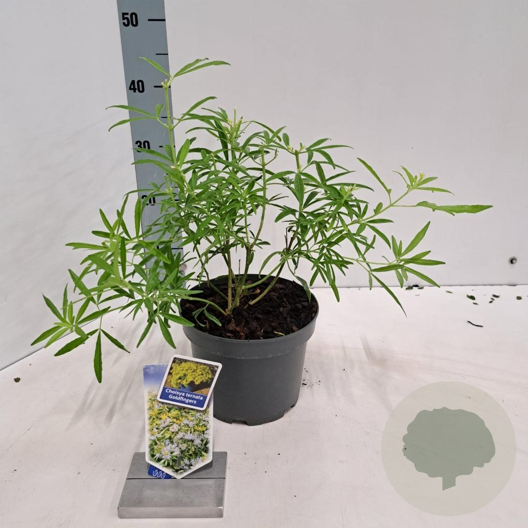 | Toelichting | De Goudvingerstruik (Choisya Goldfingers) is een prachtige sierheester met goudgele bladeren en witte bloemen in de lente en herfst. Deze struik bereikt een hoogte van 100 cm en gedijt het beste in zon tot halfschaduw op neutrale, goede tuingrond. |