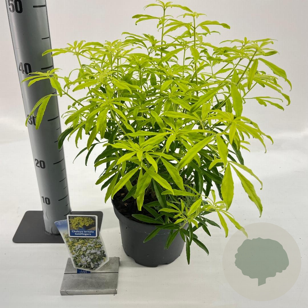 | Toelichting | De Goudvingerstruik (Choisya Goldfingers) is een prachtige sierheester met goudgele bladeren en witte bloemen in de lente en herfst. Deze struik bereikt een hoogte van 100 cm en gedijt het beste in zon tot halfschaduw op neutrale, goede tuingrond. |