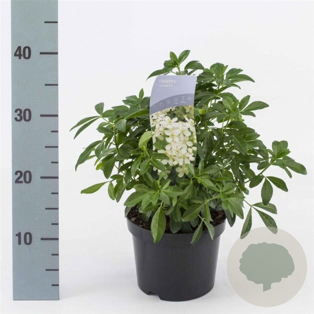 | Toelichting | De Choisya ternata, ook wel bekend als de Mexicaanse oranjebloesem, is een prachtige groenblijvende struik met witte bloemen. Deze plant bloeit in het voorjaar en herfst en gedijt goed in zonnige tot halfschaduwrijke omgevingen op zandgrond, lichte klei of neutrale grond. |