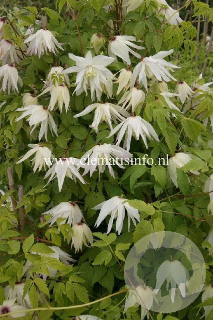 | Toelichting | De Clematis 'Albina Plena', ook wel bekend als Bosrank, is een prachtige klimplant met dubbele witte bloemen. Deze plant bloeit in de maanden mei en juni en gedijt goed in zonnige tot halfschaduwrijke omgevingen. Perfect voor neutrale, goed doorlatende tuingrond. |