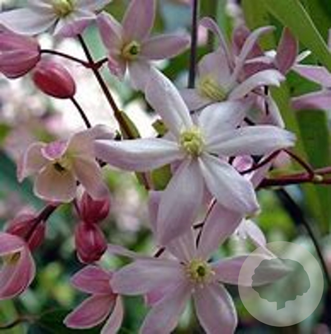 Clematis arm. 'Apple Blossom'