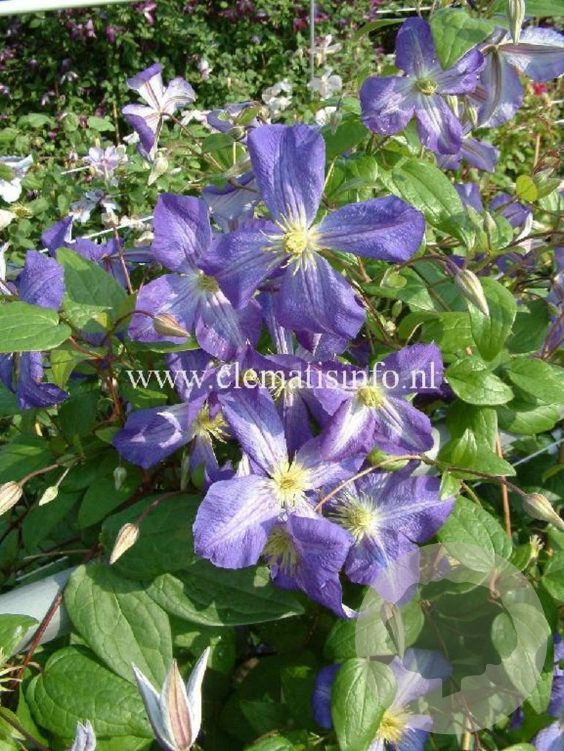| Toelichting | De Clematis 'Jenny', ook bekend als Bosrank, bloeit in mei - juni met prachtige paarse bloemen. Deze klimplant bereikt een hoogte van 200 cm en gedijt goed in zon en halfschaduw op neutrale, goede tuingrond met humus. |
