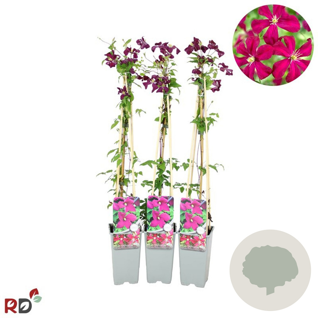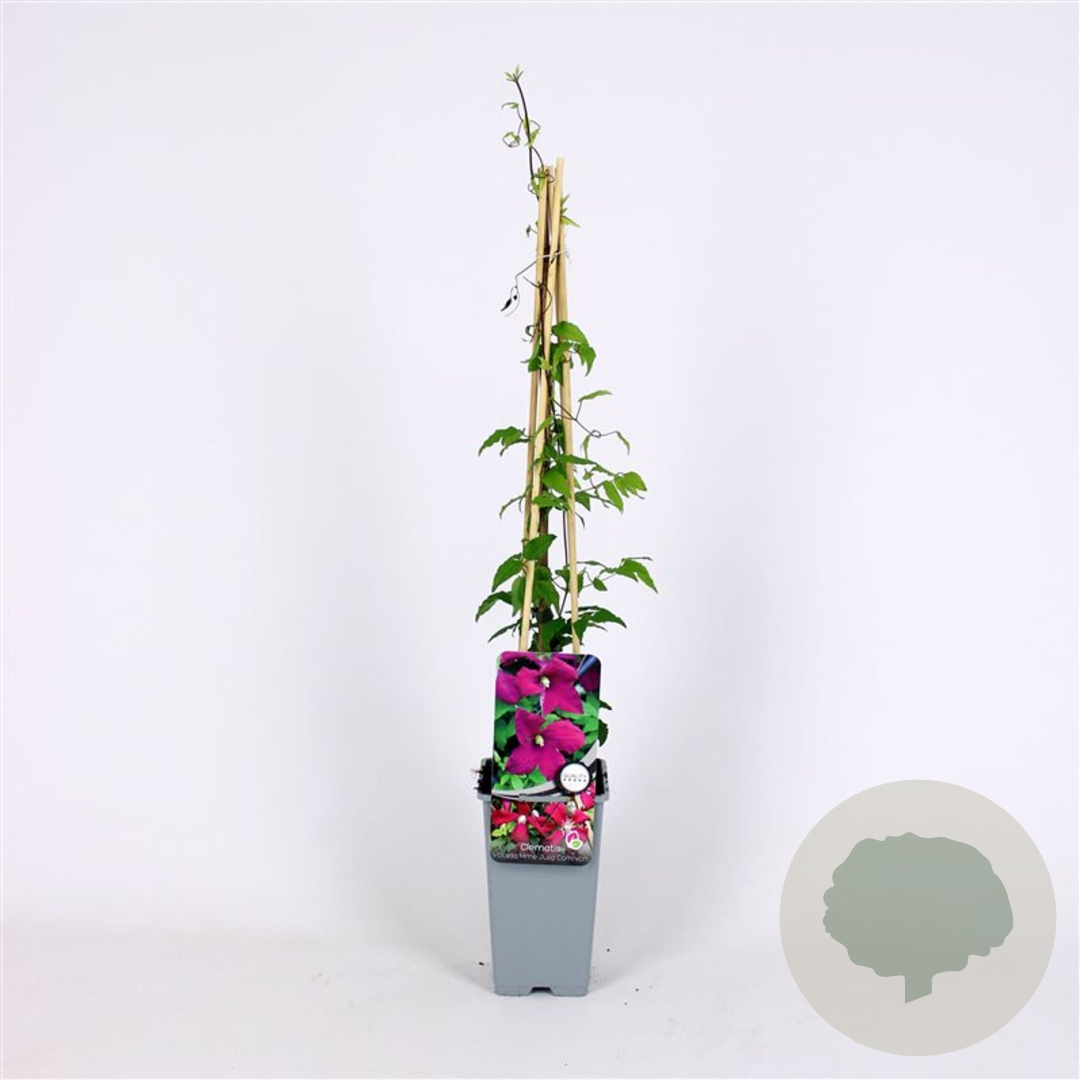 | Toelichting | De Clematis 'Madame Julia Correvon', ook wel Bosrank genoemd, is een prachtige klimplant met rode bloemen die bloeien van juni tot september. Deze plant gedijt goed in zon en halfschaduw op goede tuingrond, humusrijke grond of neutrale grond. |