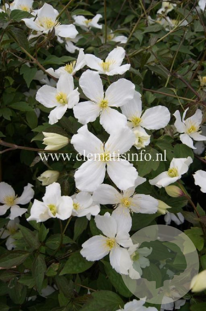| Toelichting | De Clematis montana grandiflora, ook wel bekend als Bosrank, is een prachtige klimplant met witte bloemen die bloeien in mei en juni. Deze plant gedijt goed in zon en halfschaduw op zandgrond, lichte klei of neutrale grond. |