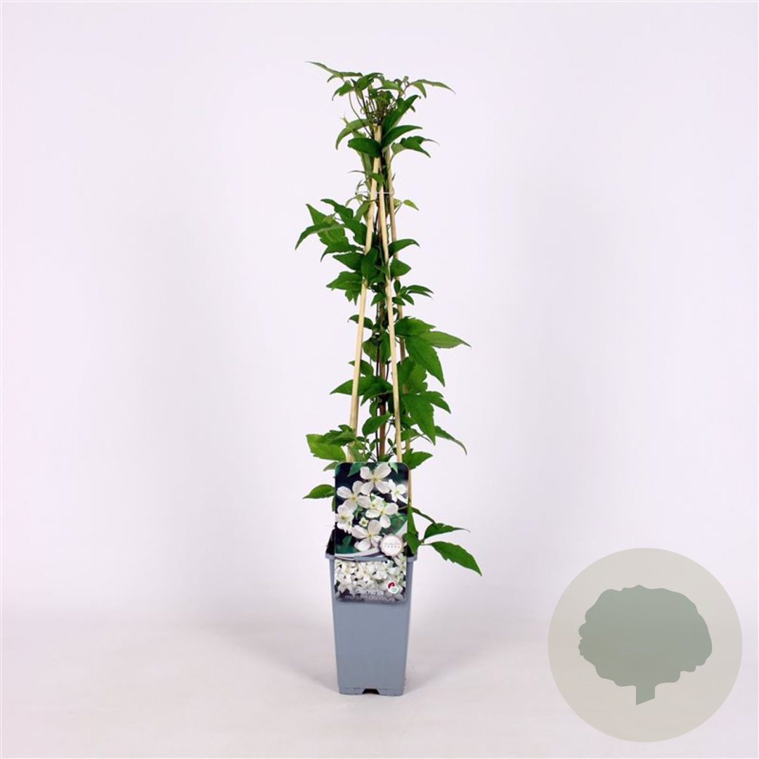 | Toelichting | De Clematis montana grandiflora, ook wel bekend als Bosrank, is een prachtige klimplant met witte bloemen die bloeien in mei en juni. Deze plant gedijt goed in zon en halfschaduw op zandgrond, lichte klei of neutrale grond. |