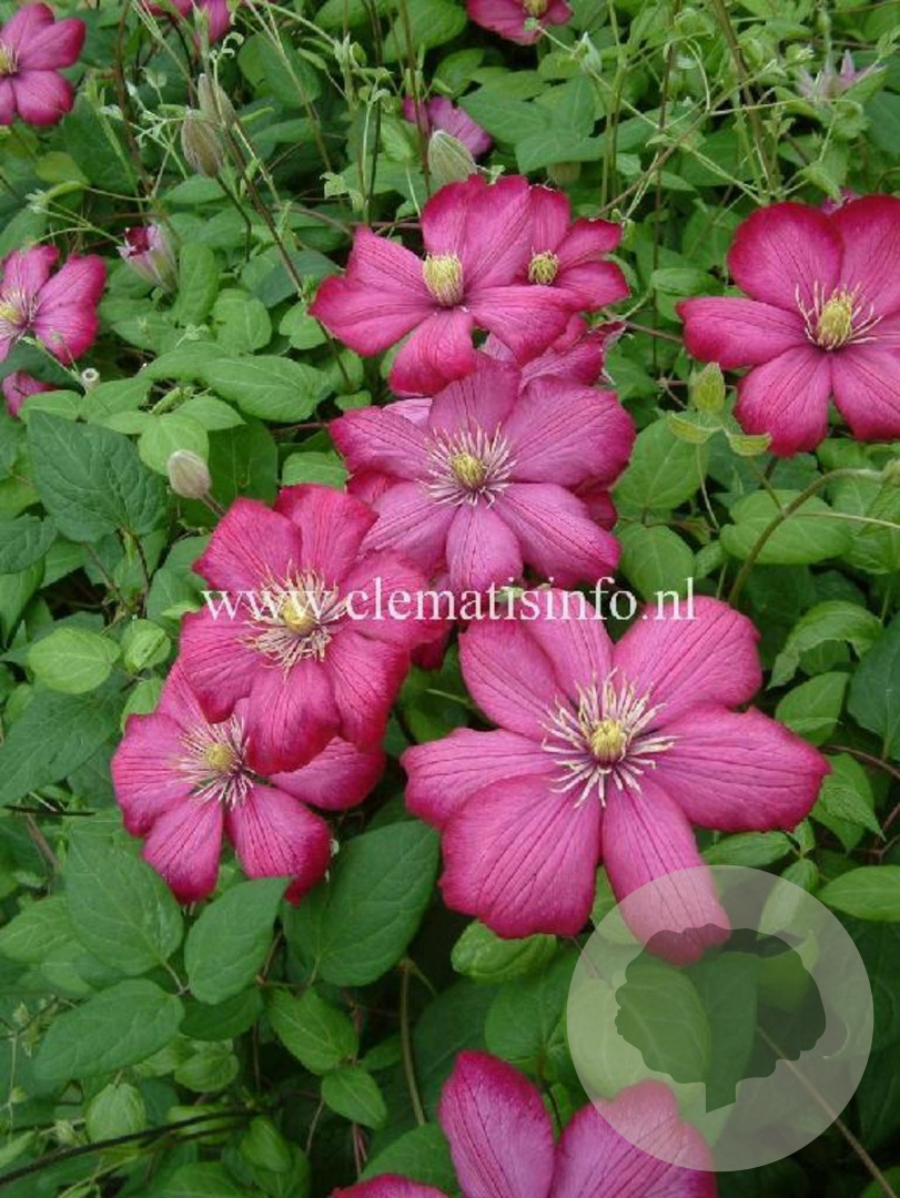| Toelichting | De Clematis 'Ville de Lyon', ook wel bekend als Bosrank, is een prachtige klimplant met rode bloemen die bloeien in mei - juni en september. Deze plant gedijt goed in zon en halfschaduw op neutrale, goede tuingrond met humus. |