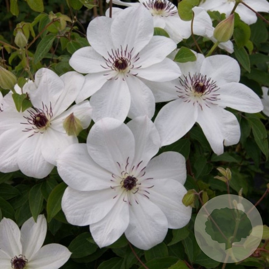 ToelichtingDe Clematis White Pearl is een prachtige klimplant met witte bloemen die bloeien in mei - juni en opnieuw in september. Deze niet-inheemse plant gedijt goed in zon en halfschaduw op neutrale, goede tuingrond met humus.