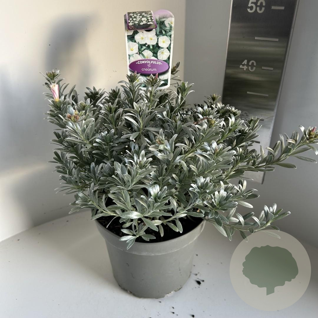 | Toelichting | De Zilverwinde (Convolvulus cneorum) is een prachtige, laagblijvende plant met zilverkleurige bladeren en witte bloemen. Bloeiend van mei tot september, gedijt deze plant het beste in de volle zon op zandgrond met een beetje kalk. |