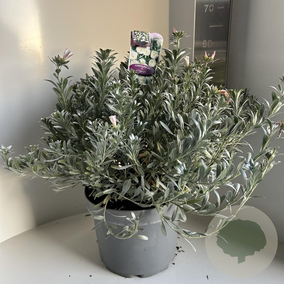 | Toelichting | De Zilverwinde (Convolvulus cneorum) is een prachtige, laagblijvende plant met zilverkleurige bladeren en witte bloemen. Bloeiend van mei tot september, gedijt deze plant het beste in de volle zon op zandgrond met een beetje kalk. |