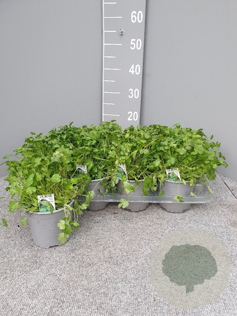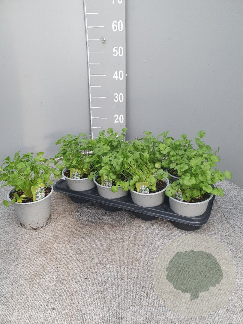 | Toelichting | Koriander (Coriandrum sativum) is een kruid met witte bloemen en groen blad. Het groeit tot 60 cm hoog en bloeit in juni en juli. Plant op een zonnige tot halfschaduwrijke plek in neutrale, voedselrijke grond voor een goede oogst van aromatische bladeren. |