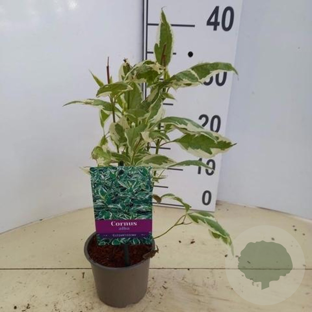 | Toelichting | De Kornoelje (Cornus alba 'Elegantissima') is een prachtige heester met groen/wit bont blad en witte bloemen in mei - juni. Deze plant wordt ongeveer 200 cm hoog en gedijt goed in zon en halfschaduw op zandgrond, lichte klei of neutrale grond. |