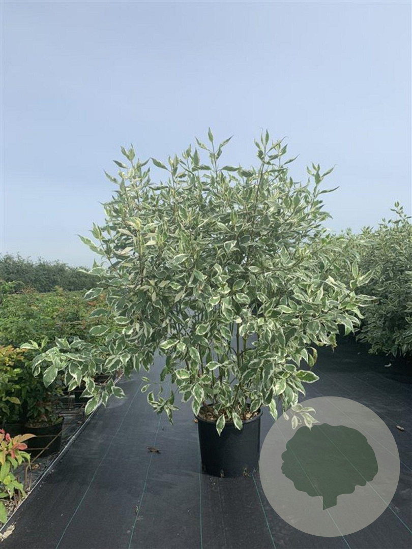 | Toelichting | De Kornoelje (Cornus alba 'Elegantissima') is een prachtige heester met groen/wit bont blad en witte bloemen in mei - juni. Deze plant wordt ongeveer 200 cm hoog en gedijt goed in zon en halfschaduw op zandgrond, lichte klei of neutrale grond. |
