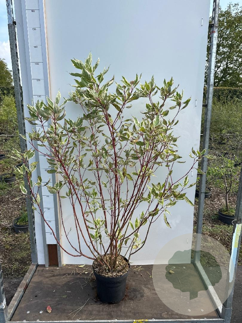 | Toelichting | De Kornoelje (Cornus alba 'Elegantissima') is een prachtige heester met groen/wit bont blad en witte bloemen in mei - juni. Deze plant wordt ongeveer 200 cm hoog en gedijt goed in zon en halfschaduw op zandgrond, lichte klei of neutrale grond. |