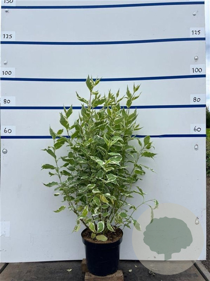 | Toelichting | De Kornoelje (Cornus alba 'Elegantissima') is een prachtige heester met groen/wit bont blad en witte bloemen in mei - juni. Deze plant wordt ongeveer 200 cm hoog en gedijt goed in zon en halfschaduw op zandgrond, lichte klei of neutrale grond. |