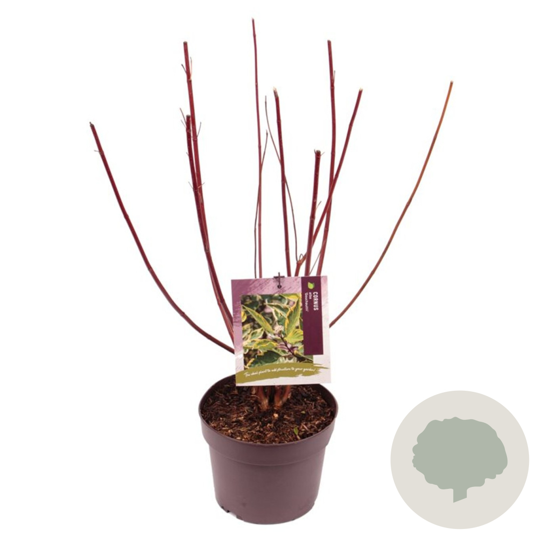 | Toelichting | De Witte kornoelje (Cornus alba 'Gouchaultii') is een prachtige struik met groen en geel blad en witte bloemen in mei - juni. Deze struik gedijt goed in zon en halfschaduw op zandgrond, lichte klei of neutrale grond. |