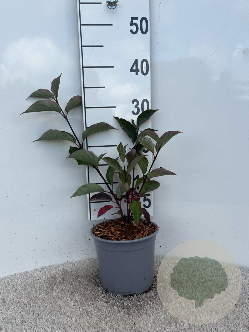 | Toelichting | De Cornus alba 'Kesselringii', ook wel Rode kornoelje genoemd, is een prachtige struik met witte bloemen in mei - juni. Het donkergroene blad en de rode takken zorgen voor een mooi contrast. Deze struik gedijt goed in zon en halfschaduw op zandgrond, lichte klei of neutrale grond. |