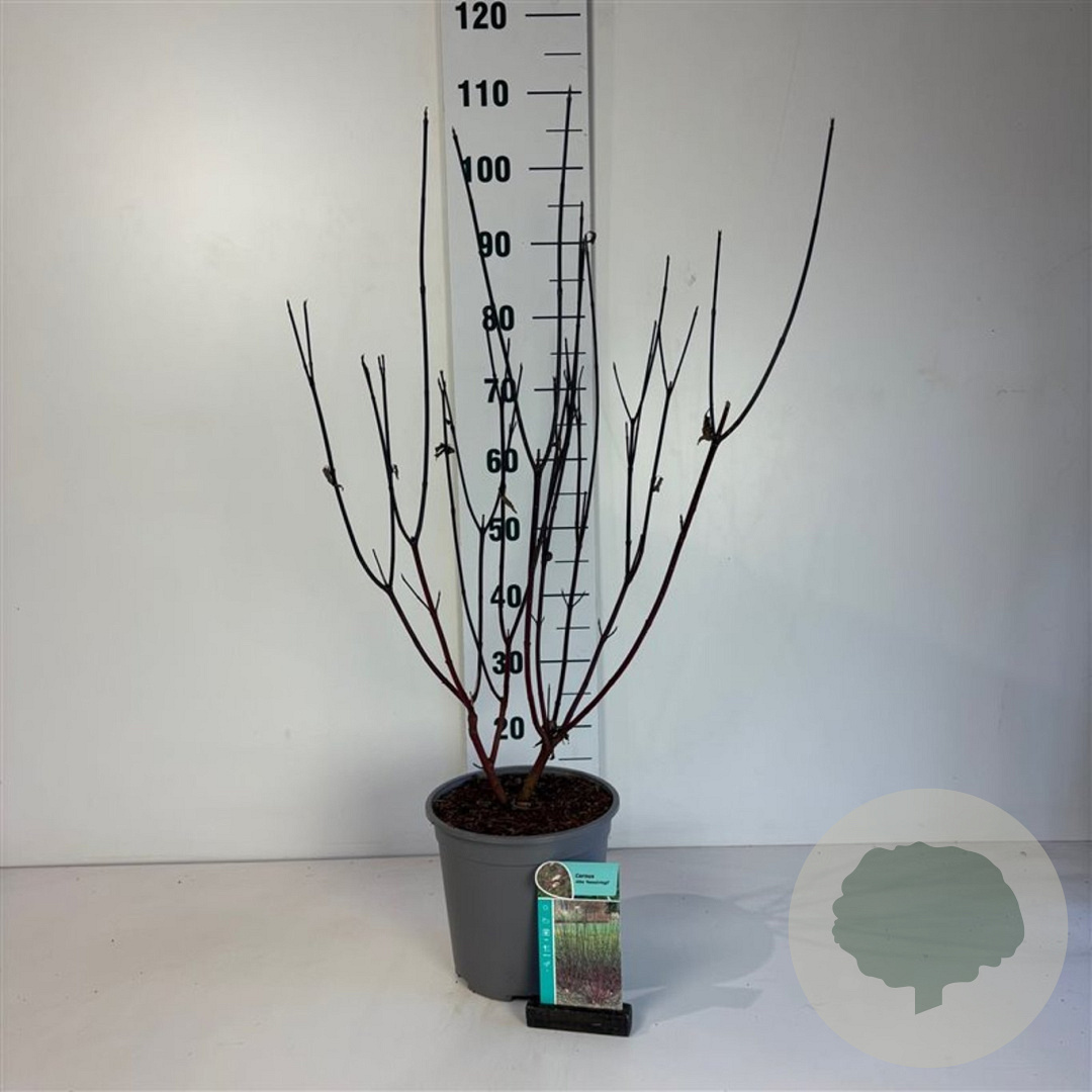 | Toelichting | De Cornus alba 'Kesselringii', ook wel Rode kornoelje genoemd, is een prachtige struik met witte bloemen in mei - juni. Het donkergroene blad en de rode takken zorgen voor een mooi contrast. Deze struik gedijt goed in zon en halfschaduw op zandgrond, lichte klei of neutrale grond. |