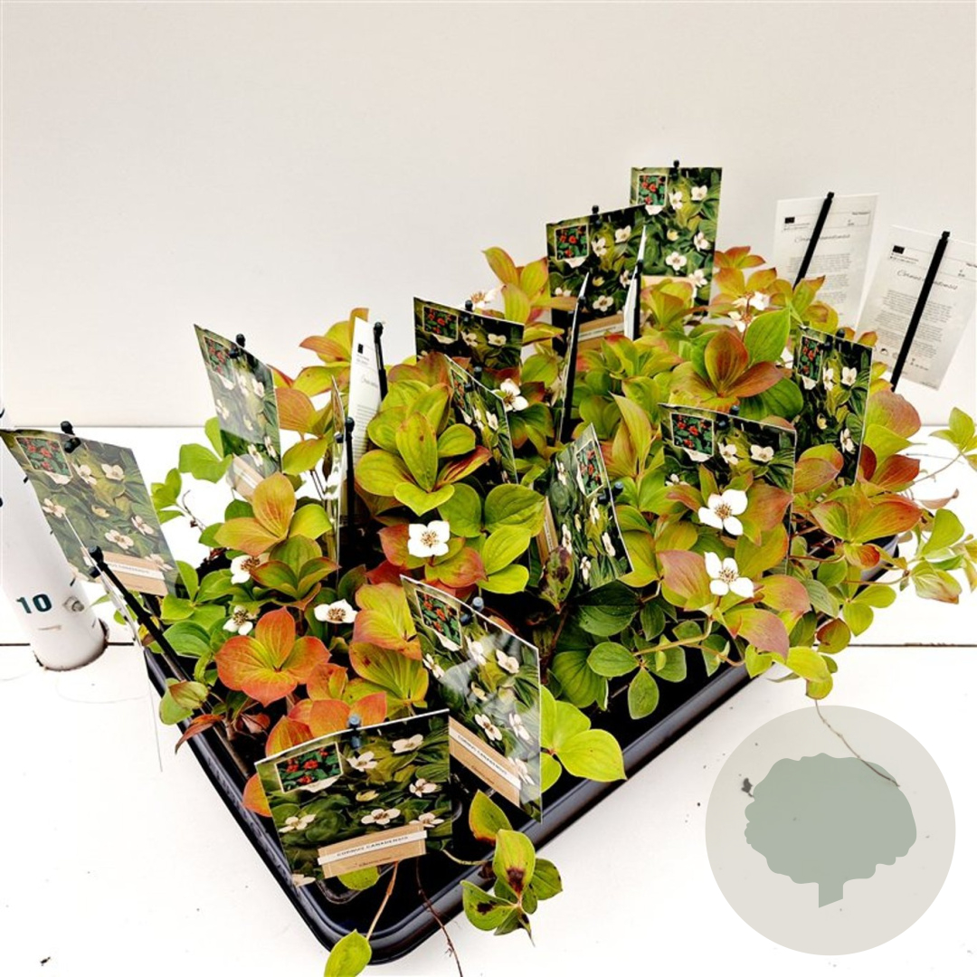 | Toelichting | De Kornoelje (Cornus canadensis) is een laagblijvende plant met witte bloemen en groen blad. Bloeit in mei-juni en gedijt goed in halfschaduw op zure, humusrijke grond. Perfect voor een natuurlijke uitstraling in de tuin. |