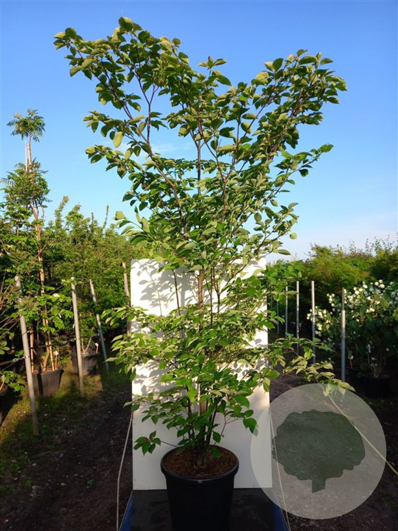 | Toelichting | De Kornoelje (Cornus controversa) is een prachtige struik met witte bloemen in mei-juni. De groene bladeren en de opvallende groeivorm maken het een eyecatcher in de tuin. Geschikt voor zonnige en halfschaduwrijke plekken op neutrale of zandgrond. |