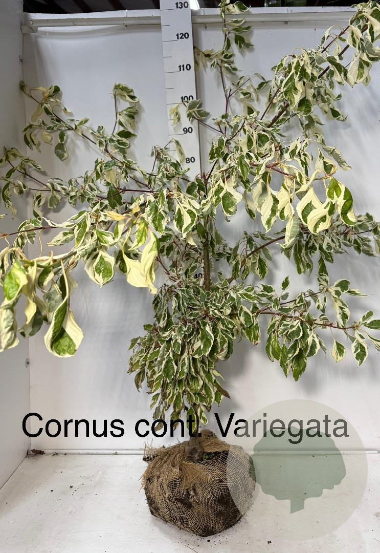 | Toelichting | De Gestreepte kornoelje (Cornus controversa 'Variegata') is een prachtige heester met groen/crème gestreept blad en witte bloemen in mei - juni. Deze plant gedijt goed in zon en halfschaduw op zandgrond, lichte klei of neutrale grond. Bereikt een hoogte van 300 cm. |