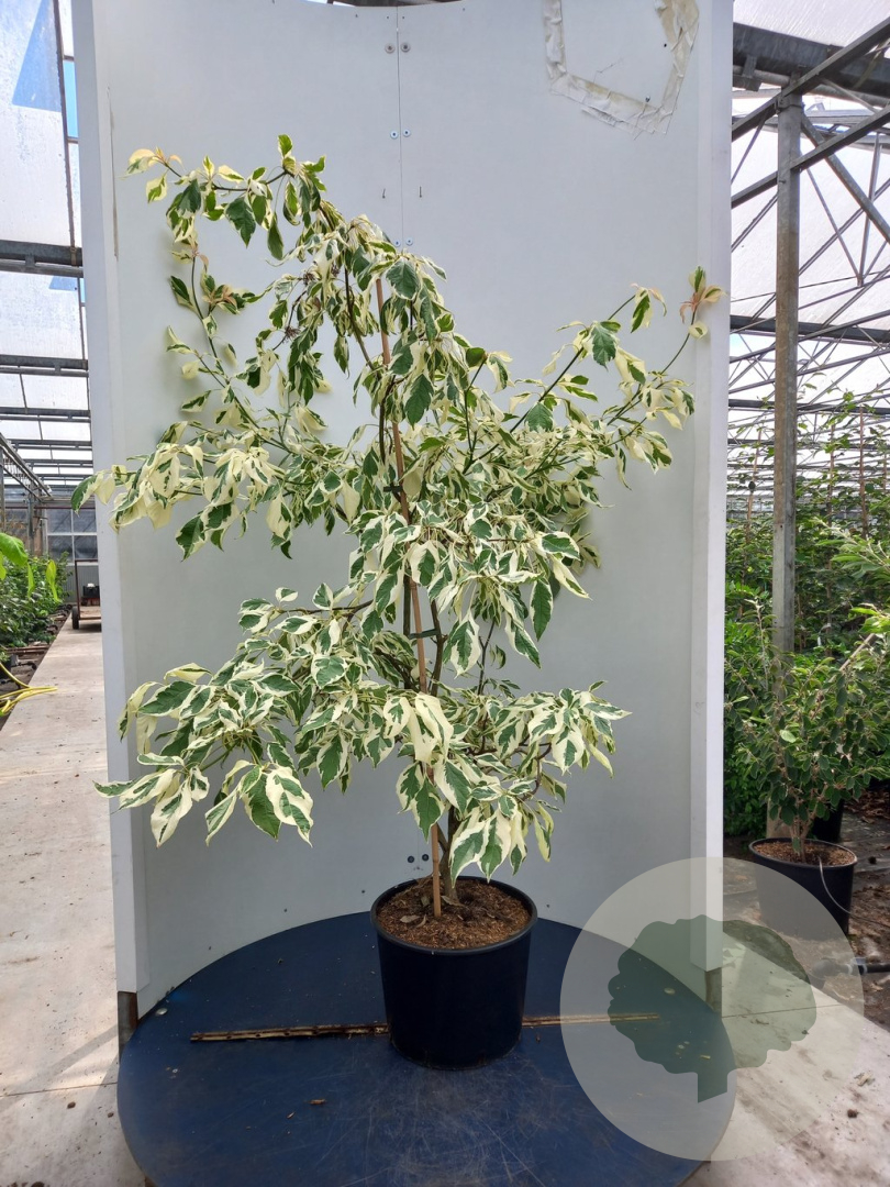 | Toelichting | De Gestreepte kornoelje (Cornus controversa 'Variegata') is een prachtige heester met groen/crème gestreept blad en witte bloemen in mei - juni. Deze plant gedijt goed in zon en halfschaduw op zandgrond, lichte klei of neutrale grond. Bereikt een hoogte van 300 cm. |