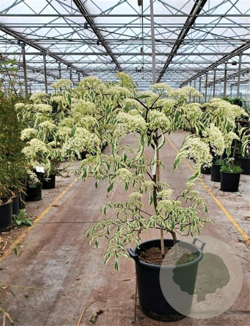| Toelichting | De Gestreepte kornoelje (Cornus controversa 'Variegata') is een prachtige heester met groen/crème gestreept blad en witte bloemen in mei - juni. Deze plant gedijt goed in zon en halfschaduw op zandgrond, lichte klei of neutrale grond. Bereikt een hoogte van 300 cm. |