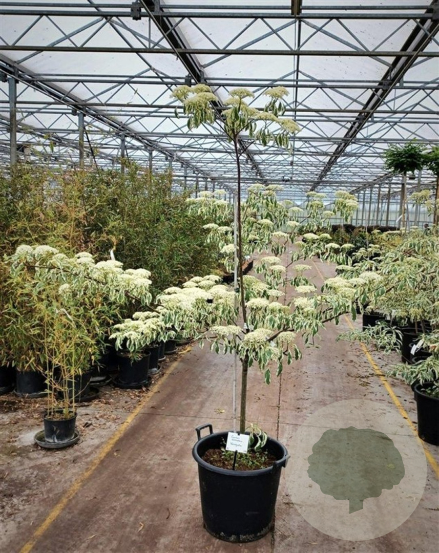 | Toelichting | De Gestreepte kornoelje (Cornus controversa 'Variegata') is een prachtige heester met groen/crème gestreept blad en witte bloemen in mei - juni. Deze plant gedijt goed in zon en halfschaduw op zandgrond, lichte klei of neutrale grond. Bereikt een hoogte van 300 cm. |