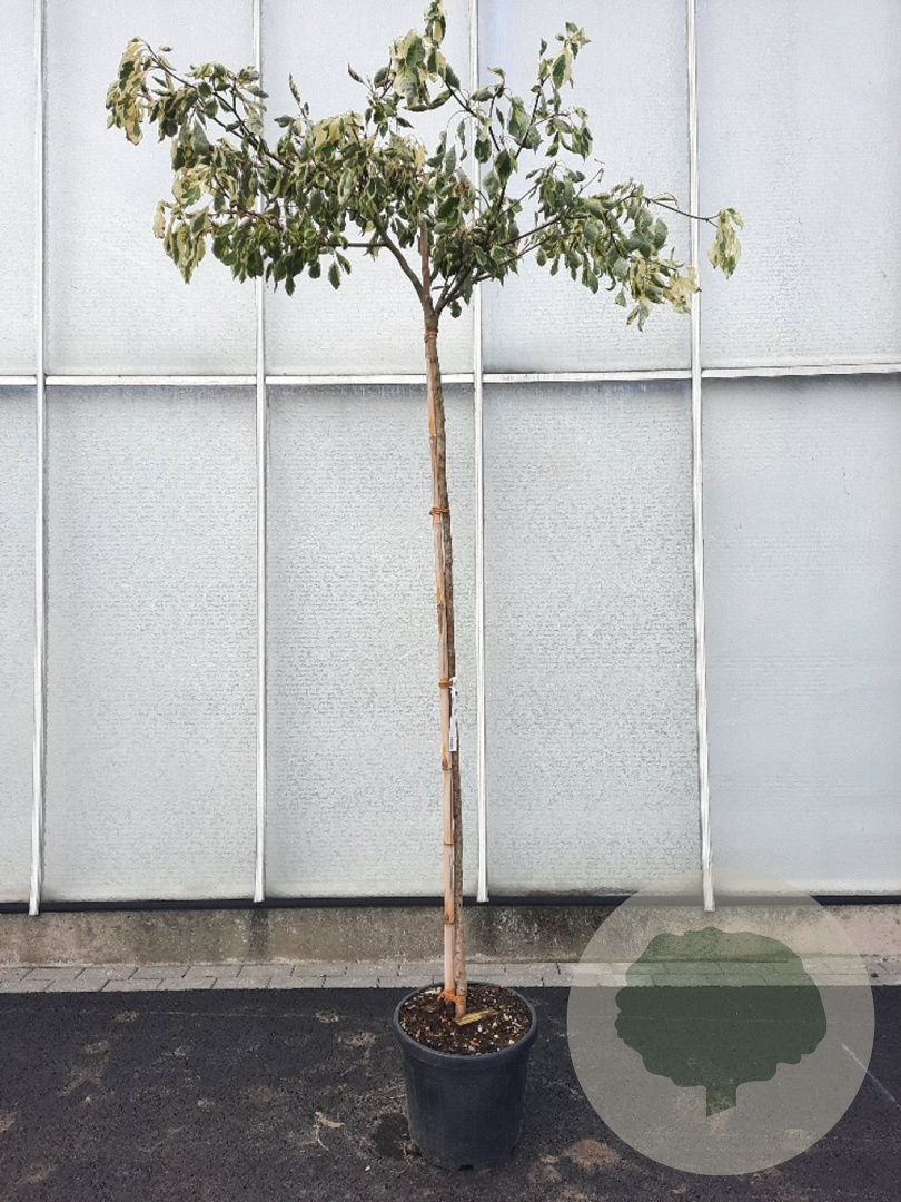 | Toelichting | De Gestreepte kornoelje (Cornus controversa 'Variegata') is een prachtige heester met groen/crème gestreept blad en witte bloemen in mei - juni. Deze plant gedijt goed in zon en halfschaduw op zandgrond, lichte klei of neutrale grond. Bereikt een hoogte van 300 cm. |