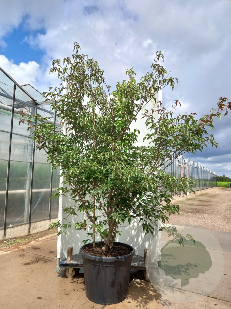 | Toelichting | De Hongkong kornoelje is een prachtige struik met witte bloemen in de periode mei-juni. Het groene blad en de compacte groei maken het een aanwinst voor elke tuin. Deze kornoelje gedijt goed in zon en halfschaduw op zandgrond, lichte klei of neutrale grond. |