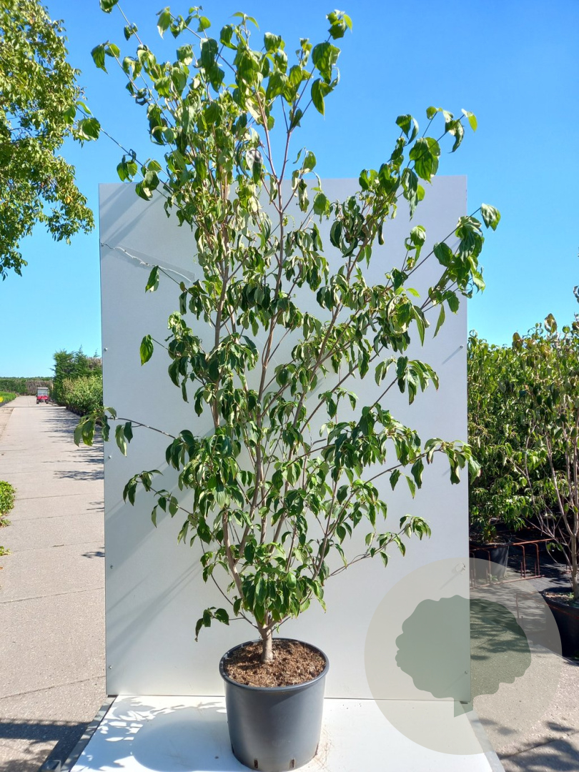 | Toelichting | De Kornoelje 'China Girl' is een prachtige struik met witte bloemen in mei-juni. Het groene blad en compacte formaat maken het een mooie aanvulling voor zowel zonnige als halfschaduwrijke tuinen. Geschikt voor zandgrond, lichte klei en neutrale grond. |