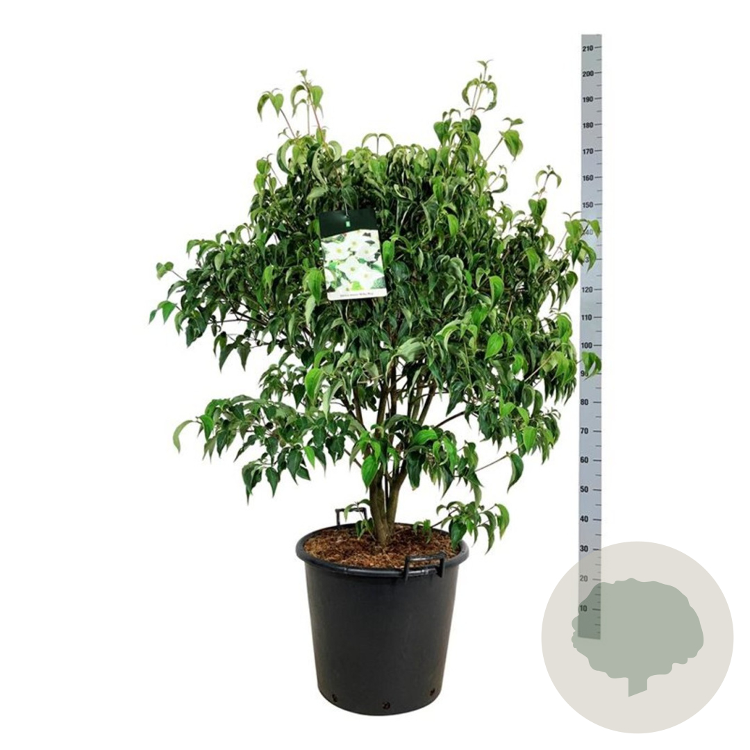 | Toelichting | De Kornoelje 'Milky Way' is een prachtige struik met witte bloemen in mei-juni. De groene bladeren en compacte groei maken het een aanwinst voor elke tuin. Geschikt voor zon en halfschaduw op zandgrond, lichte klei of neutrale grond. |