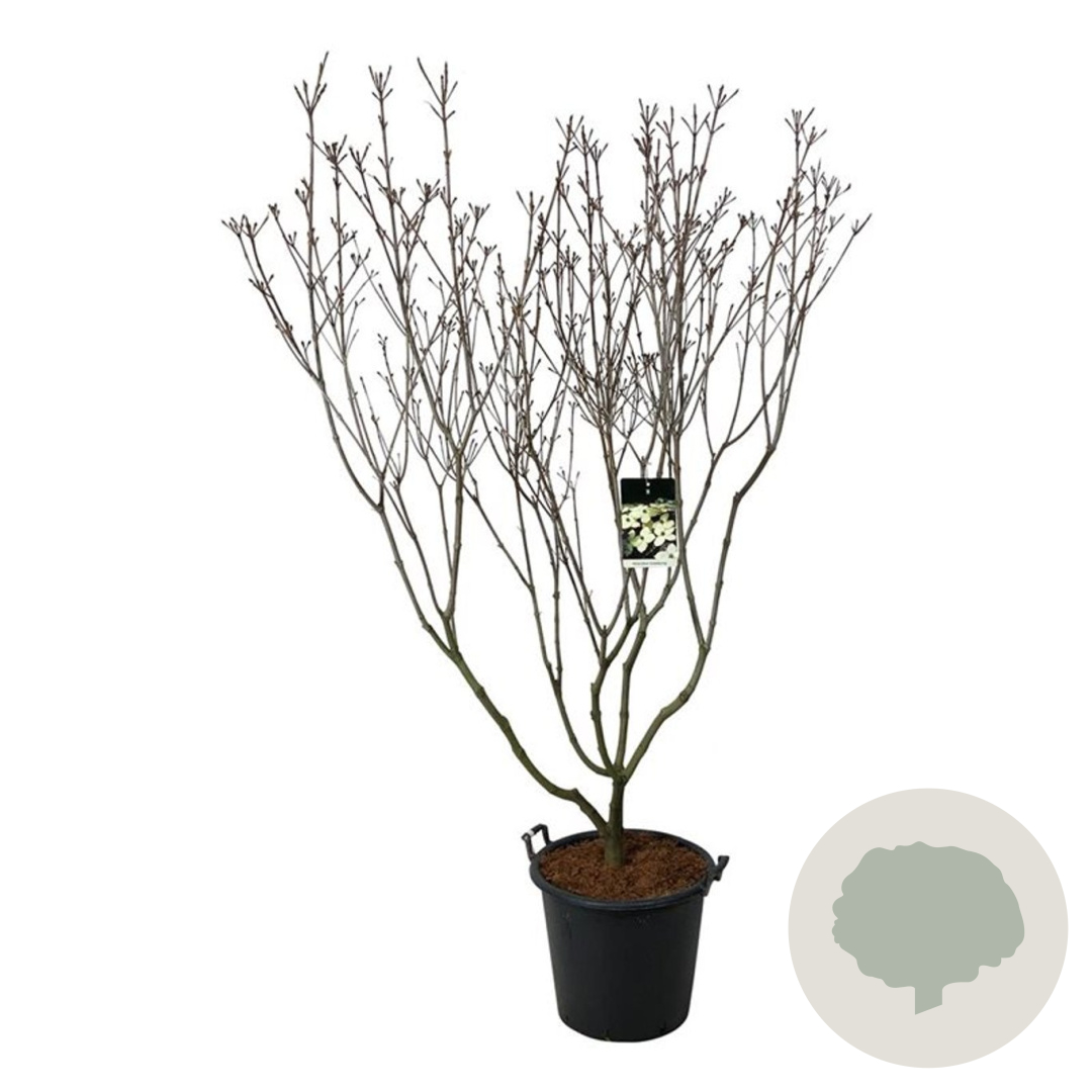 | Toelichting | De Kornoelje 'Schmetterling' is een prachtige struik met witte bloemen in mei en juni. Het groene blad en de compacte groei maken het een ideale plant voor zowel zonnige als halfschaduwrijke plekken in de tuin. |